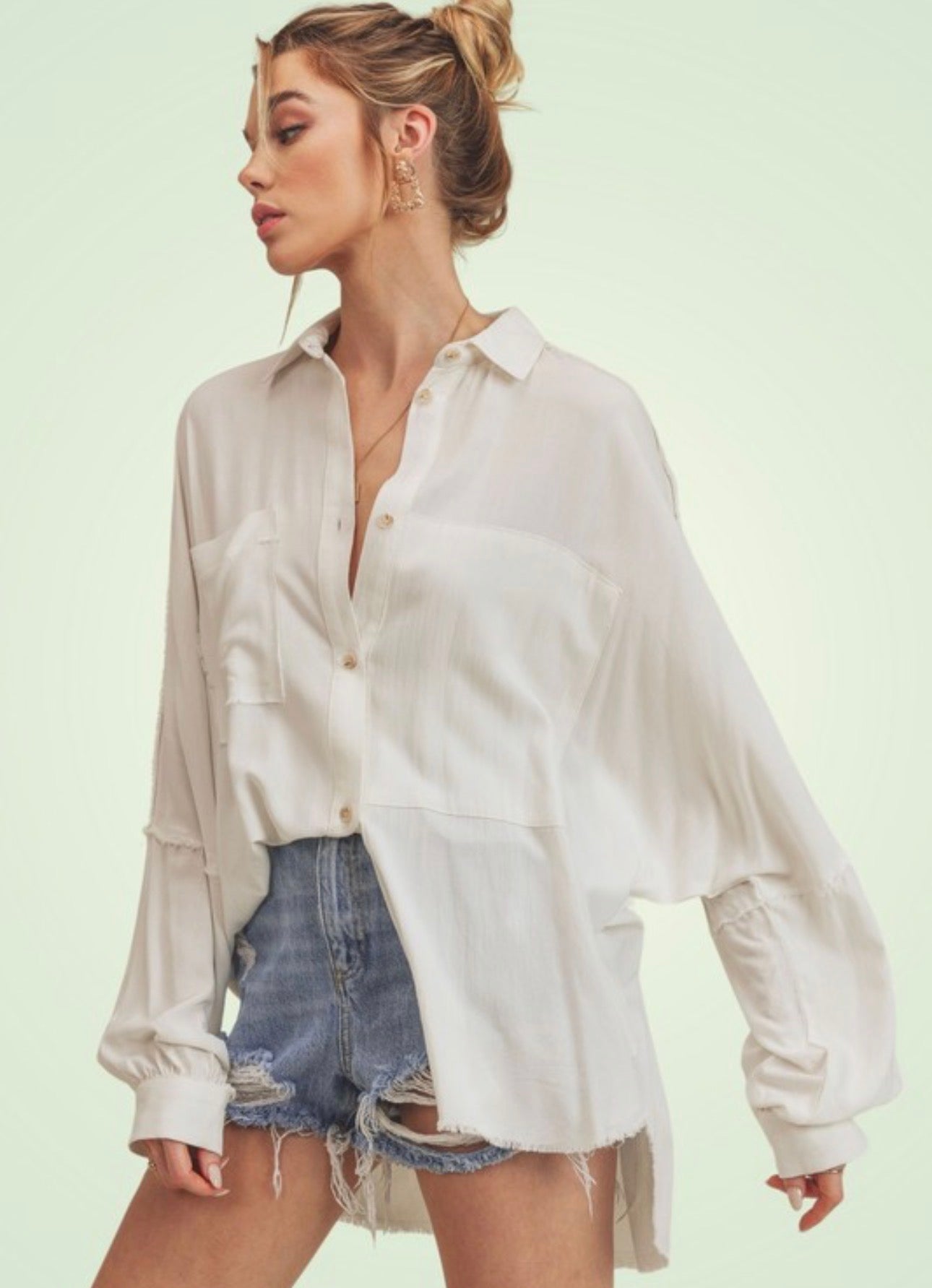 flowy button down, great for easy wearing, open or closed
