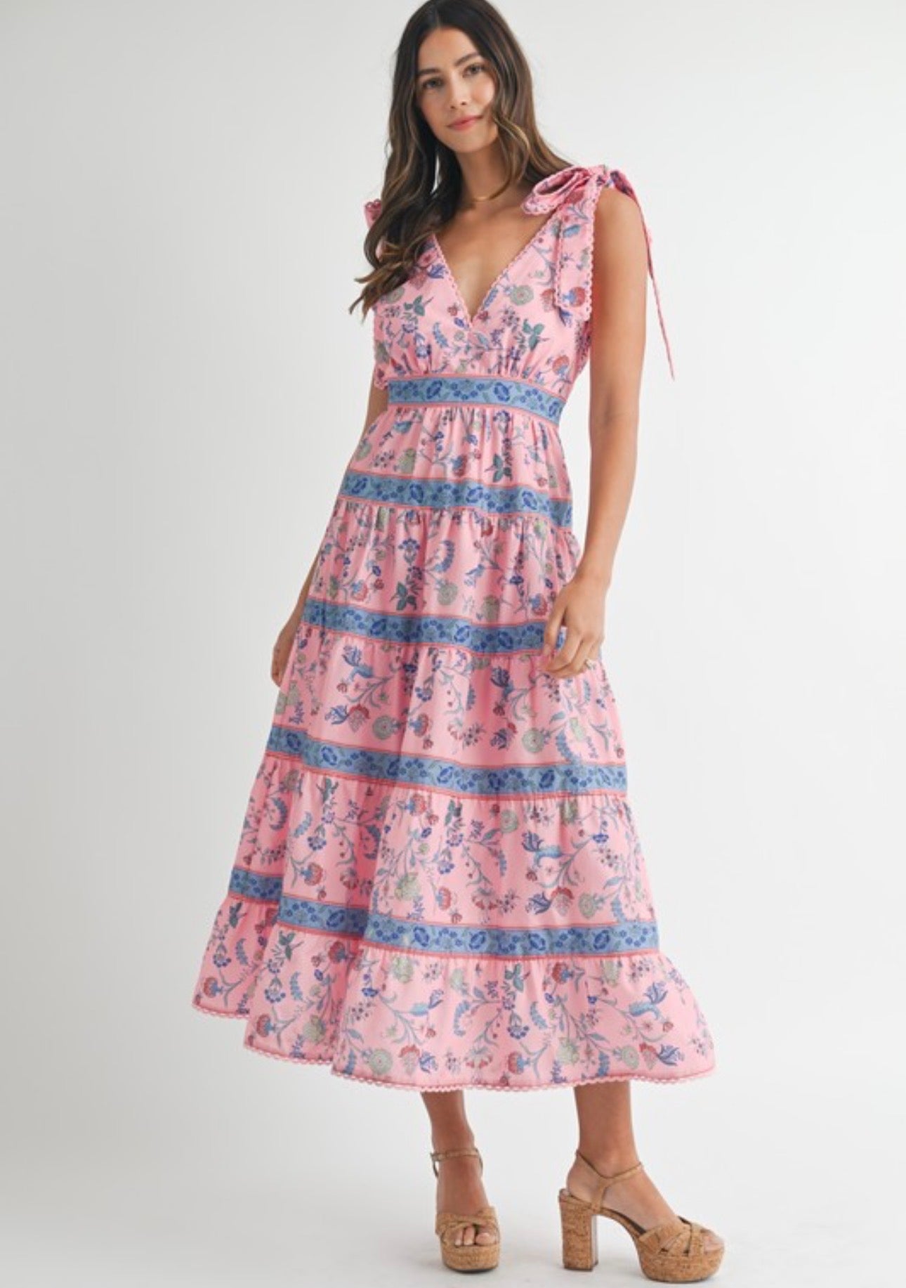 make a statement in this pink pattern maxi dress, high quality fabric, zip up back