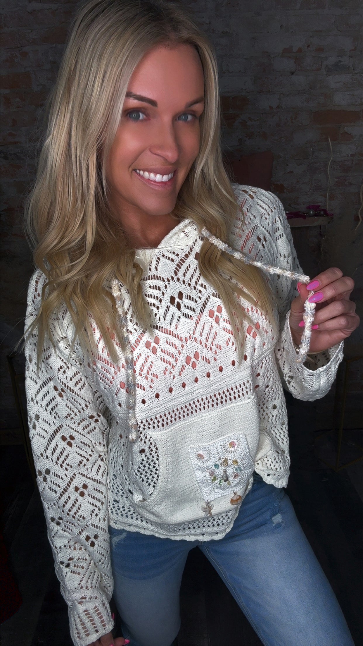 natural fit hoodie, sweater top with cute beach vibe front detail by POL